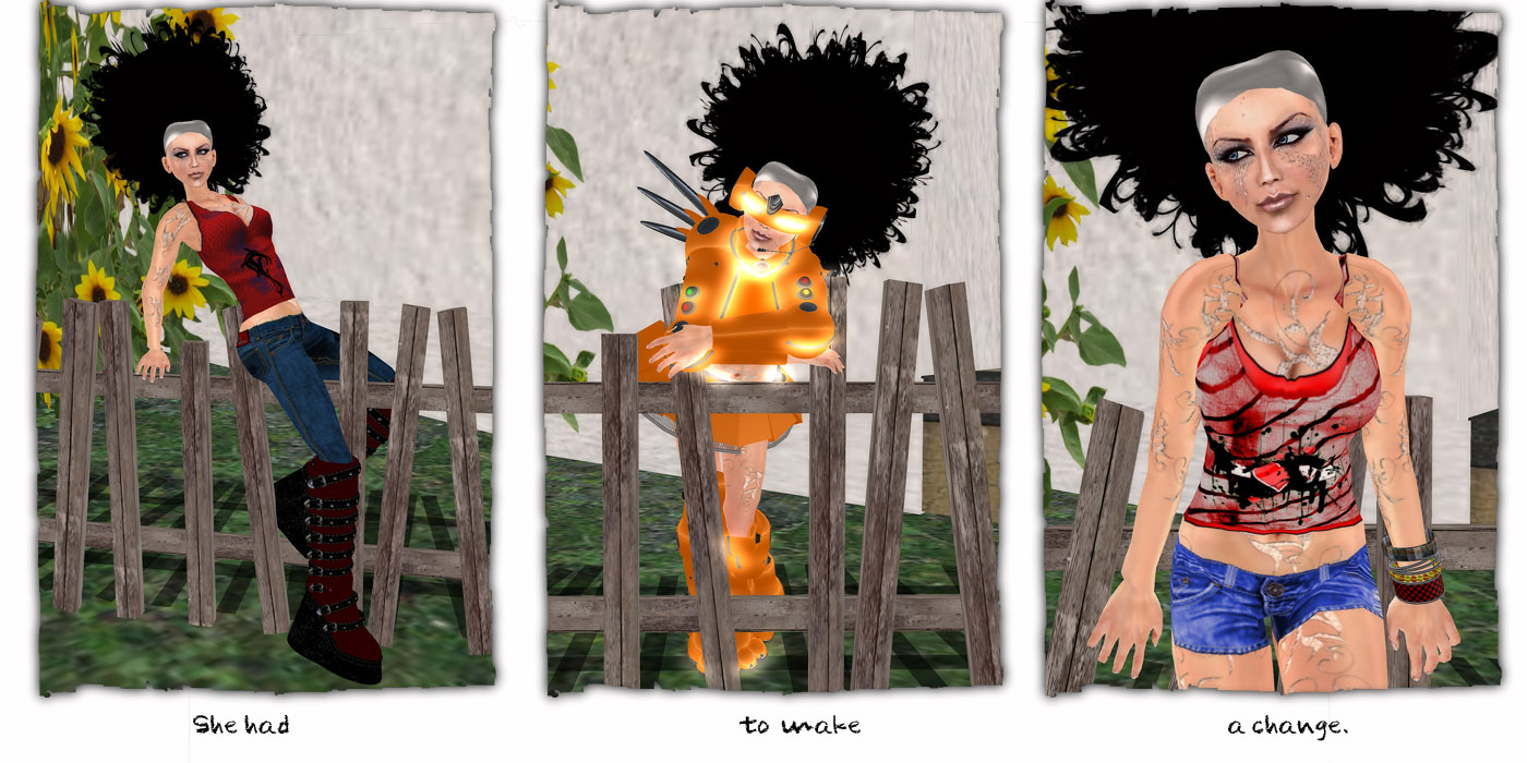 CLOTHING/ACCESSORIES: ($1 Wall; much more available for guys too) @ Vellas, http://slurl.com/secondlife/The%20Deck/128/128/2; EYES- lucky chair: **Firefall** Eternity Eyes Blue Pale @ Phoenix Designs, http://slurl.com/secondlife/Feschenko/54/8/239; HAIR- L$1 for *OC* Crazy Hair, http://slurl.com/secondlife/Orage%20Creations/38/231/42, http://www.flickr.com/photos/oragecreations; SKIN- lucky chair: ![Nikita Fride] =^.^= Skin Winter !, http://slurl.com/secondlife/Nikita%20Fride/75/128/31, http://nikitafride.wordpress.com/; POSES- L$0 for GLITTERATI - Fence [freebie!], http://slurl.com/secondlife/Glitterati/129/175/22, https://uncensored.xstreetsl.com/modules.php?name=Marketplace&file=item&ItemID=2208161, http://www.flickr.com/groups/glitteratiposes/